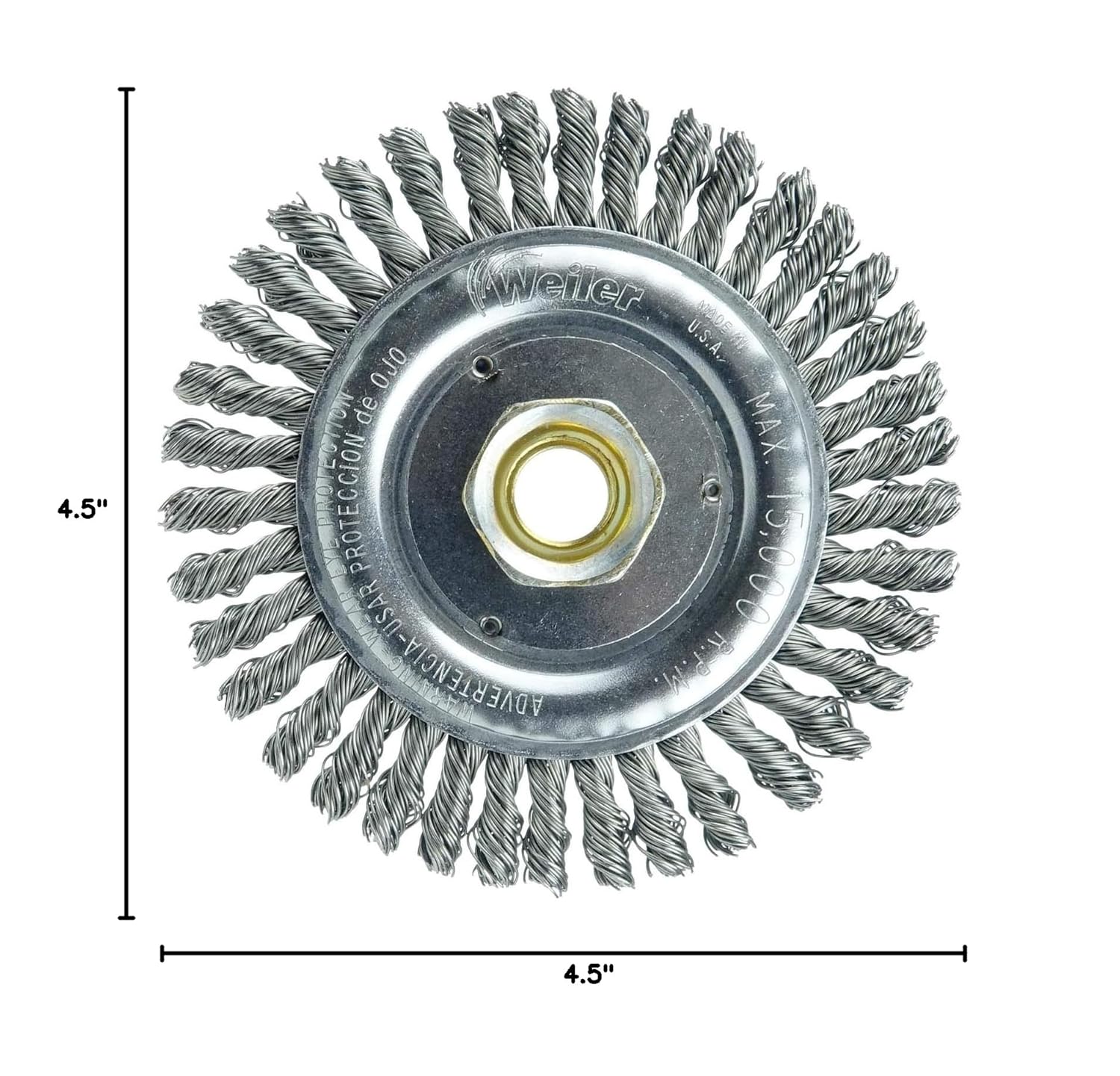 About this itemnHIGH-PERFORMANCE WELD CLEANING: Delivers unmatched weld cleaning performance by maximizing life, efficiency and consistencynLONG BRUSH LIFE: Superior side load resistance prevents premature wire breakagenAPPLICATION: Suitable for cleaning root and hot passes and reaching into corners. 5/8