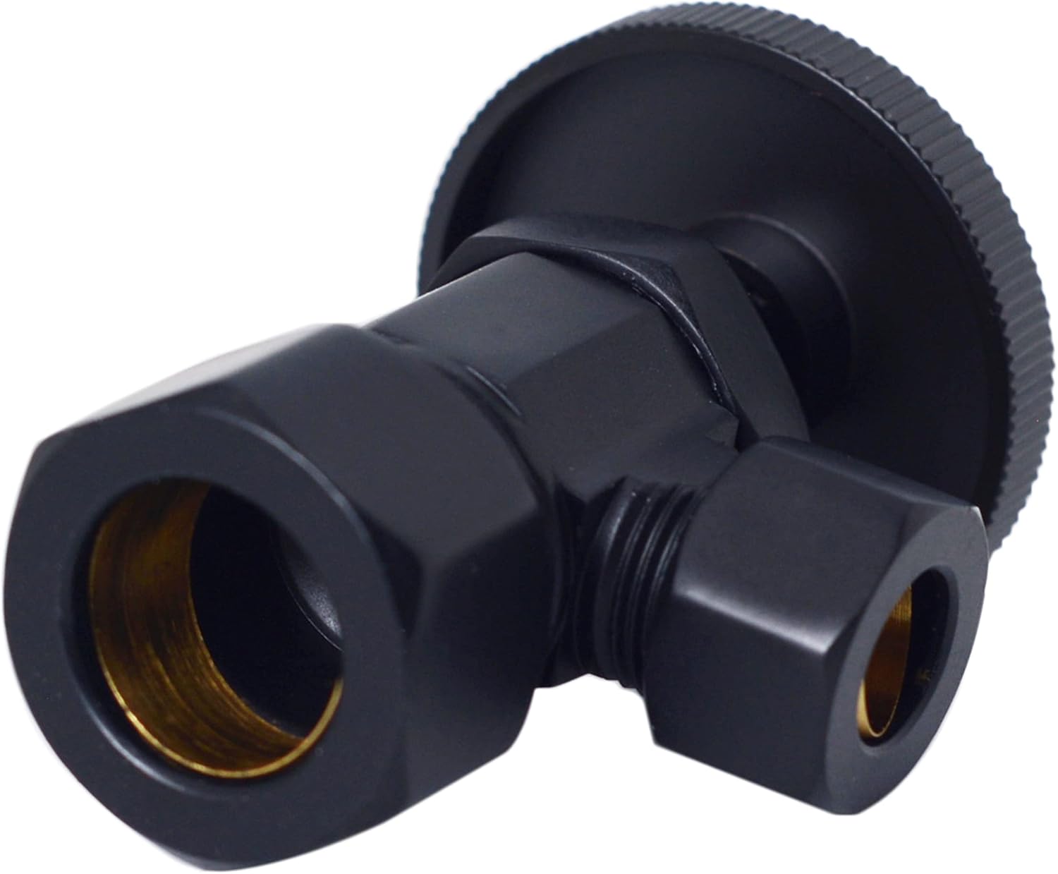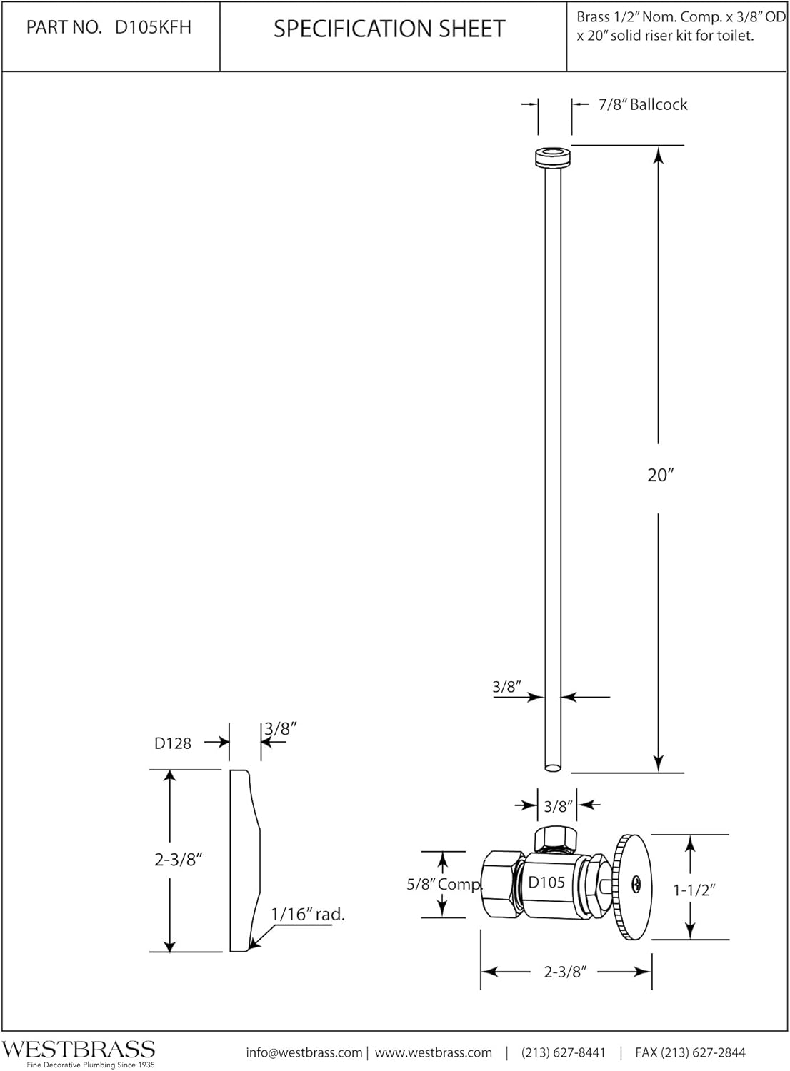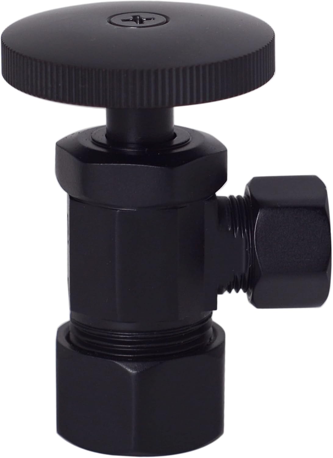 About this itemnAngle stop supply kit for toilet installationnRound handle compression angle stopn5/8 in. OD (1/2 in. nominal compression) inlet x 3/8 in. OD compression outletn3/8 in. x 20 in. flat head toilet risern5/8 in. OD (1/2 in. nominal) shallow sure grip flangen› See more product details