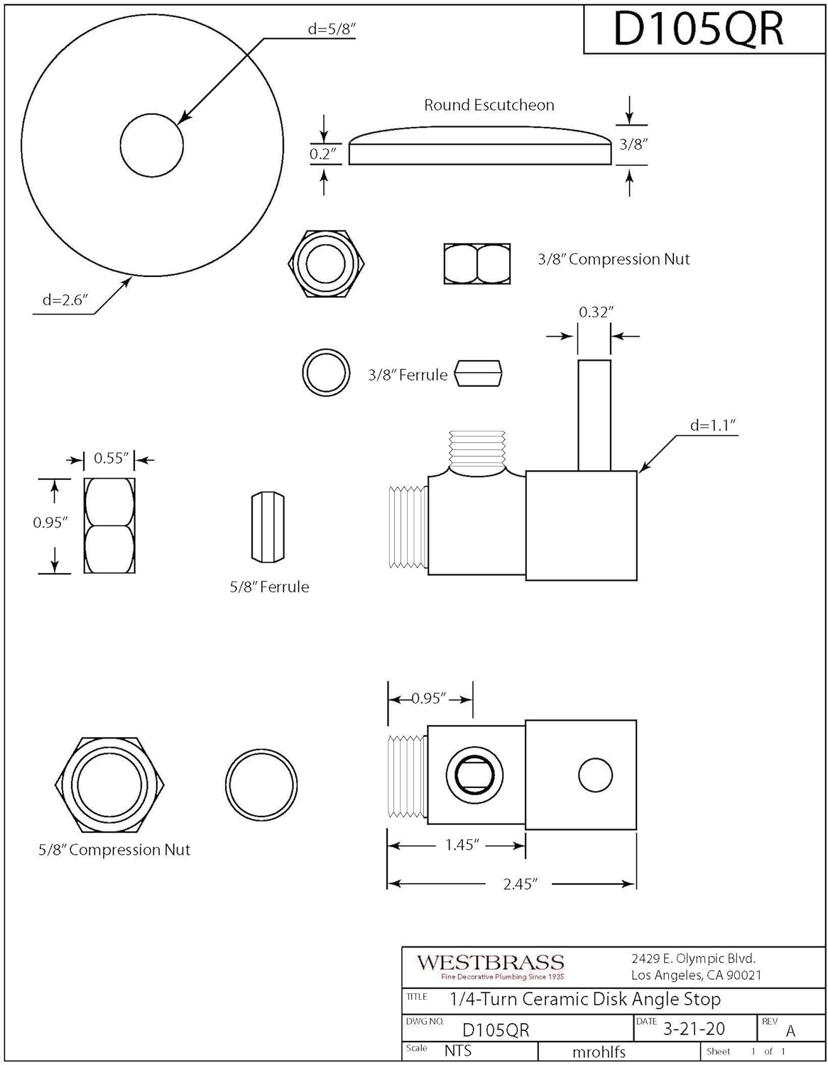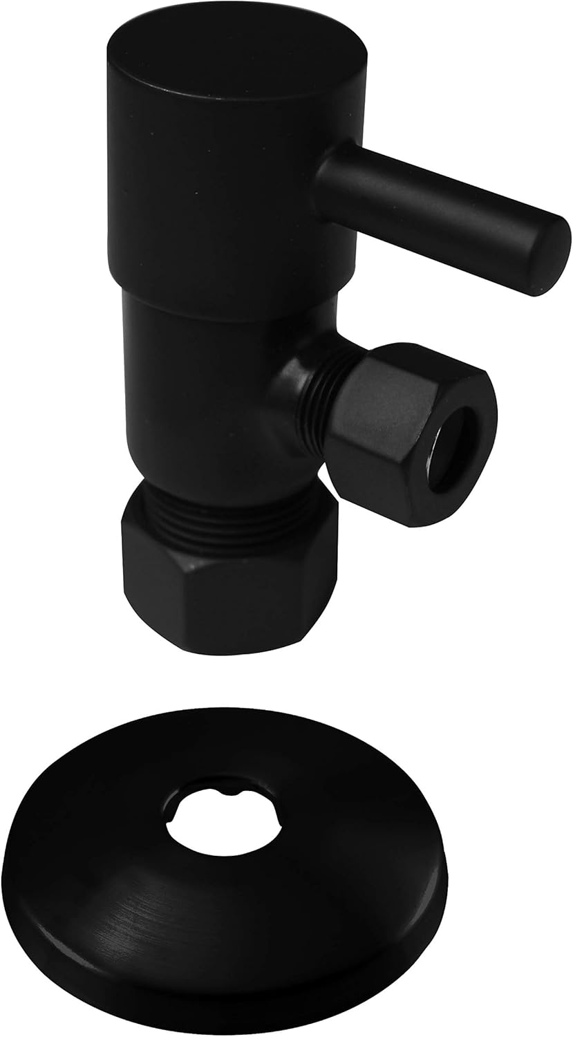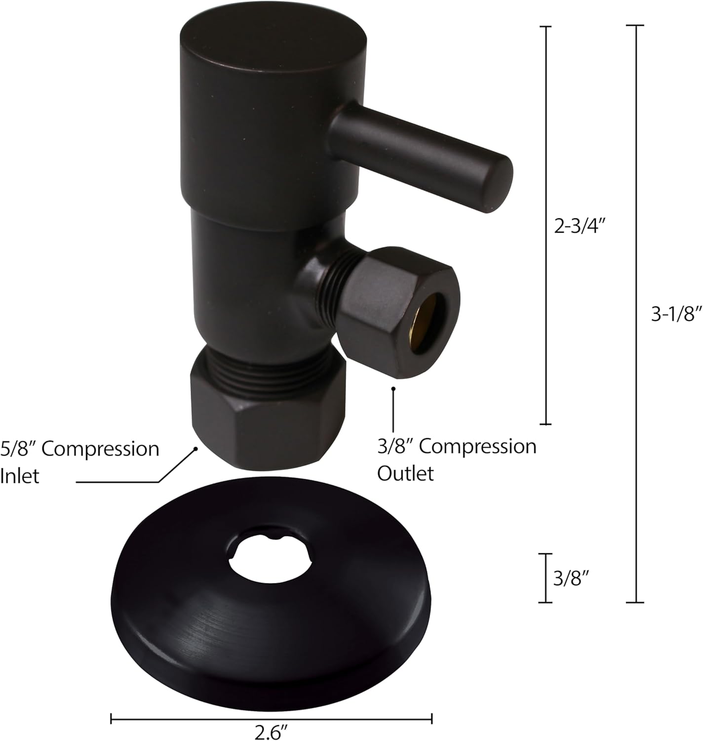 About this itemnRound handle rotates 1/4-turn to stop water flown5/8 in. OD (1/2 in. nominal compression) inlet for copper pipen3/8 in. OD compression outlet for toilets or sinksnComes with matching low profile flangenLead-free Brass constructionn See more product details