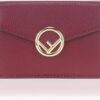 FENDI Calf Leather F Logo Barola Red Micro Trifold Wallet 8M0395