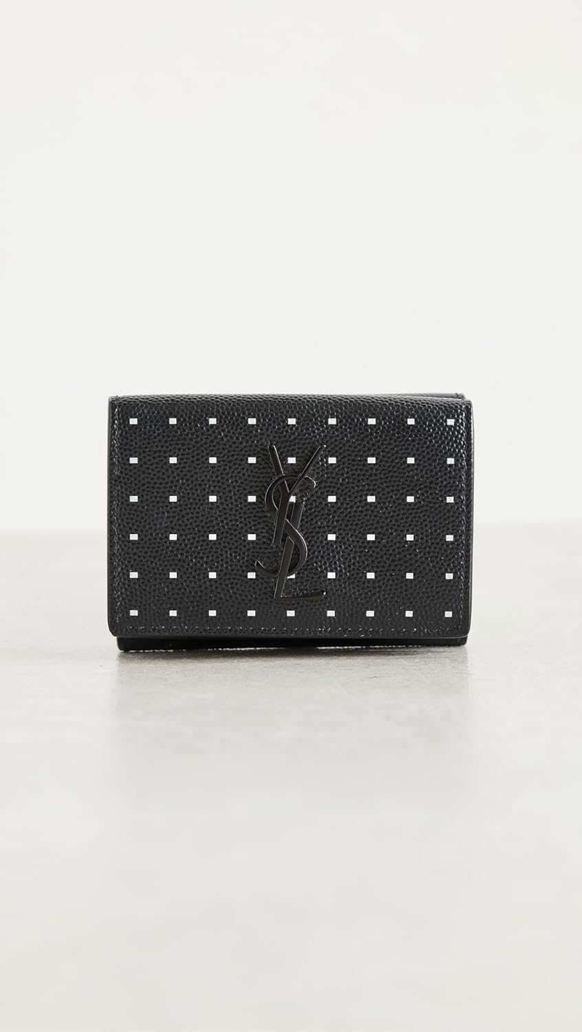 WHAT GOES AROUND COMES AROUND Women’s Pre-Loved YSL Black Grainy Printed DM Compact Wallet