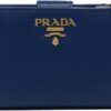 Prada Wallets Womens Saffiano Leather Astrale Blue Snap Trifold Wallet Leather Wallet For Women
