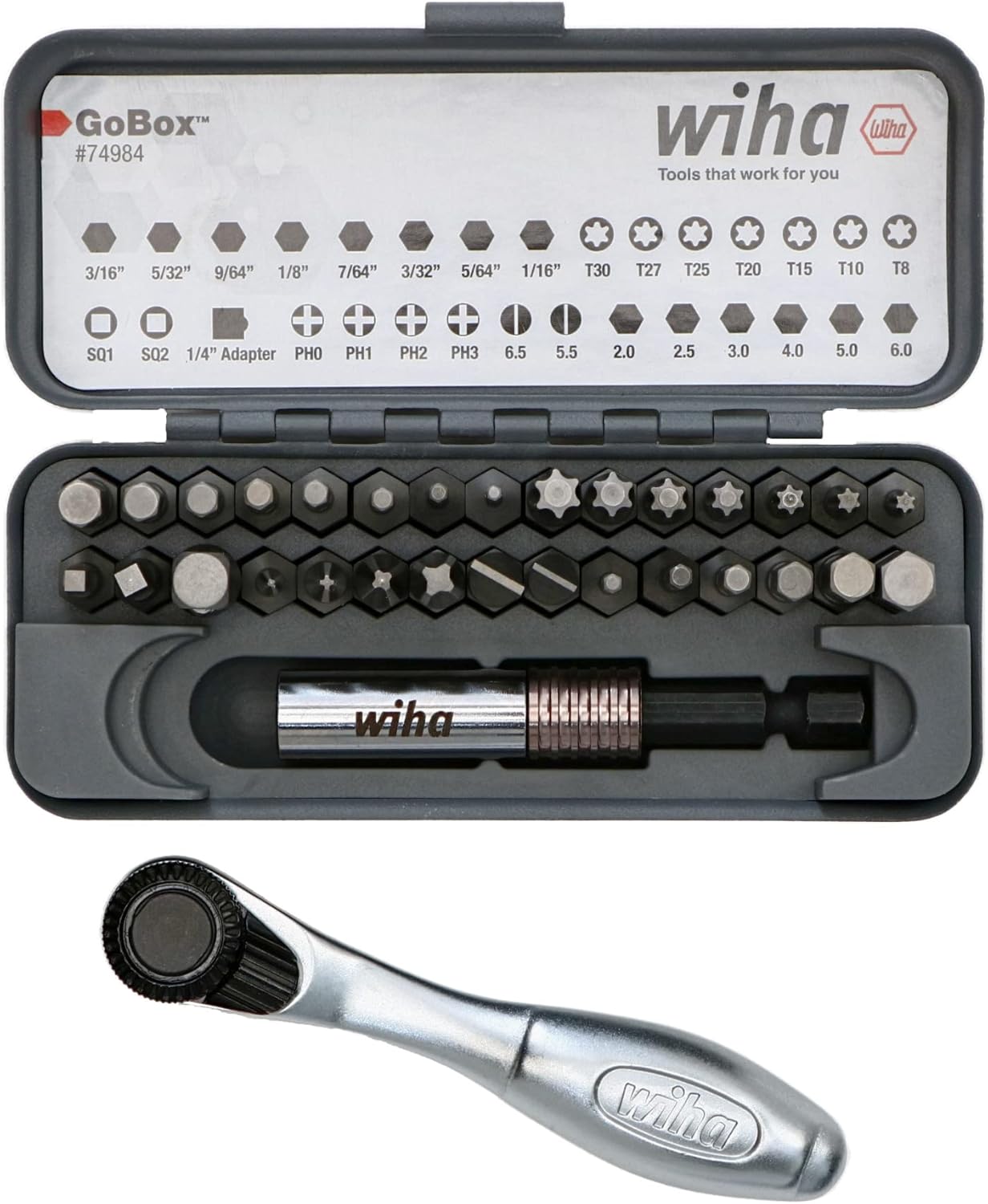 Wiha 74984 32 Piece GoBox Standard Bit Set with Mini Ratchet