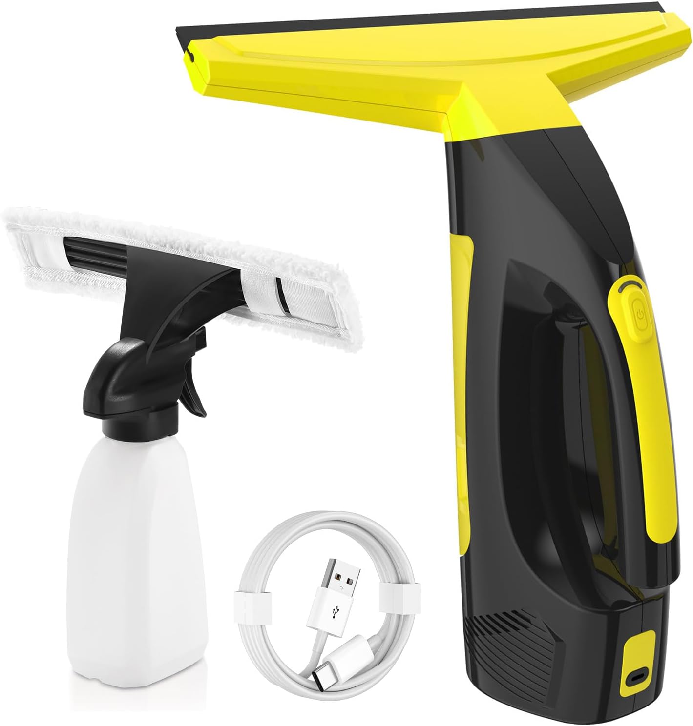 About this itemn???????????????? ?????????????? – This window vacuum features high-efficient motor has a good cleaning performance which can produce 2000Pa strong suction. which can easily and efficiently clean up the dirty water without any water streaks or scratches left on the glass.n???????????????????????? ???????????? ???????????? ???????????????? – The window vacuum squeegee has a built-in 2200mAh rechargeable battery. When the electric window cleaning tool is fully charged, it can run continuously for up to 40 minutes, which is enough for you to clean the entire house.n???????????????? ???????????? – First mist the surface by using the included spray bottle, then wipe away dirt and stains with the microfiber pad , and finish by vacuuming up the dirty water with the window vac without any streaks or drips left. (The microfiber cloth is removable for easy cleaning.)n??????????-?????????????? ?????????????? – The window vacuum squeegee is suitable for cleaning most smooth surfaces, such as showers, mirrors, windows, tile, and countertops, etc.This versatile tool is ideal for tackling all kinds of cleaning jobs around the home.n???????????????? ???????????? – This cordless Window vacuum saves you trips back and forth, plugging and unplugging from room to room. Plus the lightweight allows you to do it all easily with one hand.It is lightweight and very easy to hold and clean without hand fatigue.