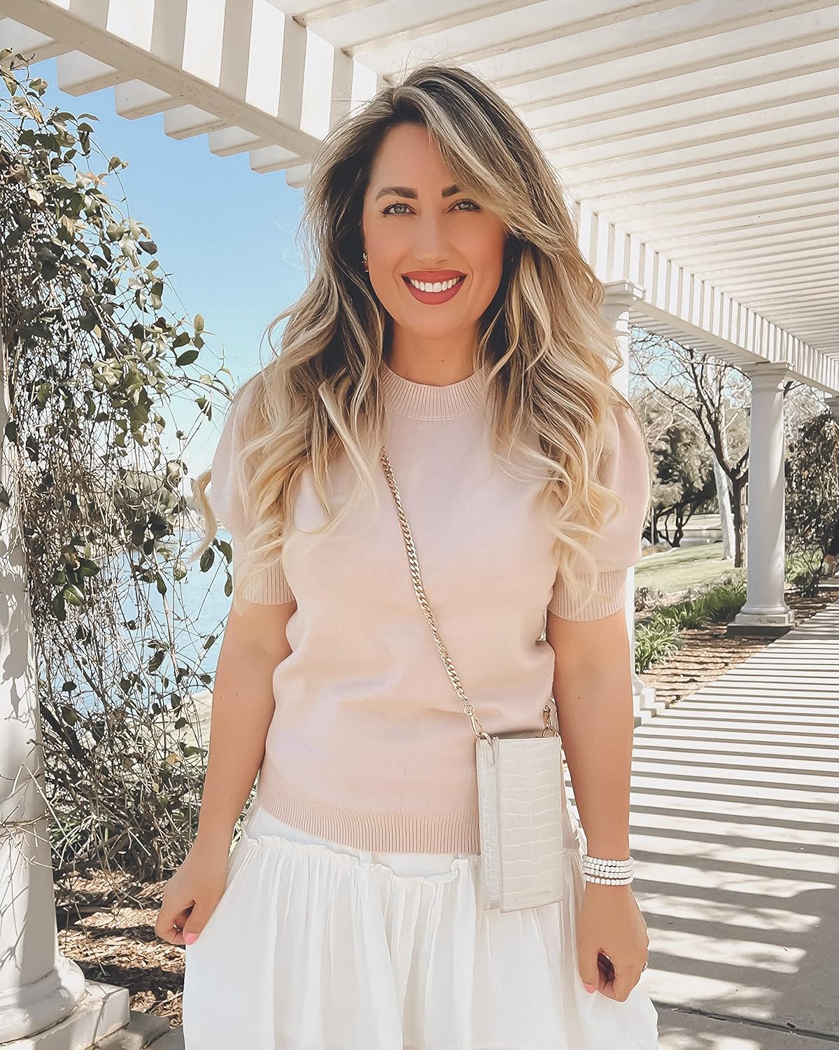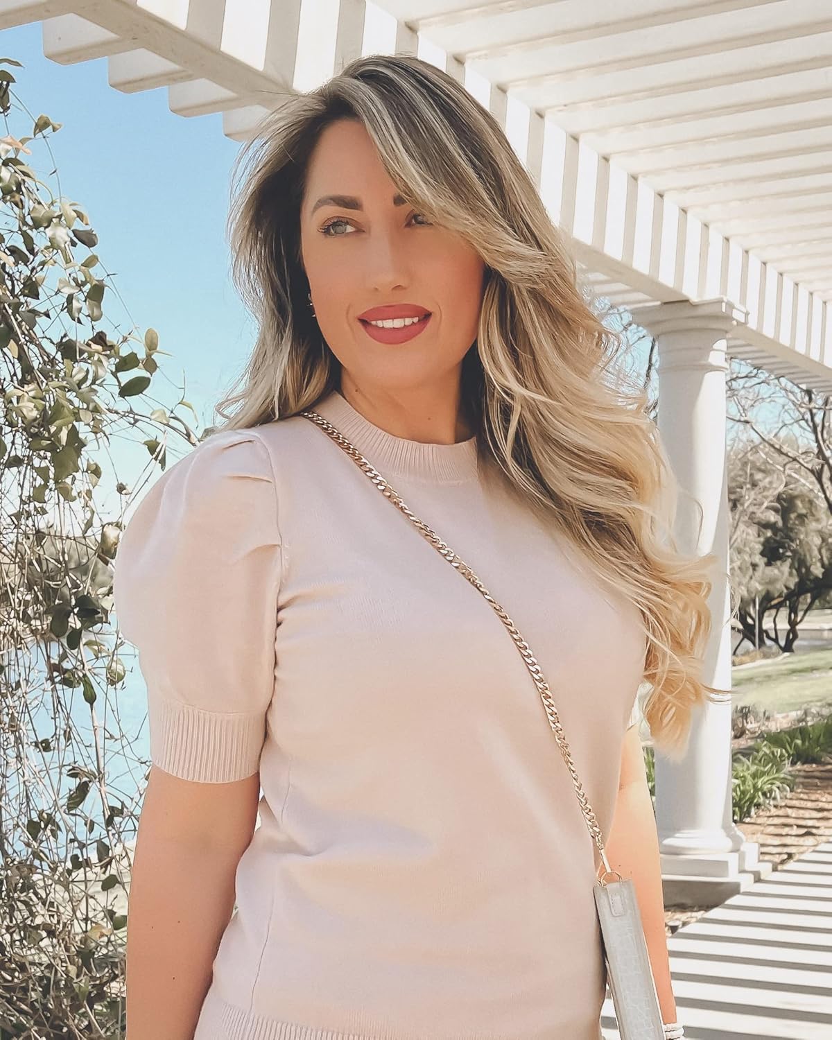 Women’s Puff Short Sleeve Sweater Tops 2024 Spring Summer Trendy Crew Neck Casual T Shirts Blouses