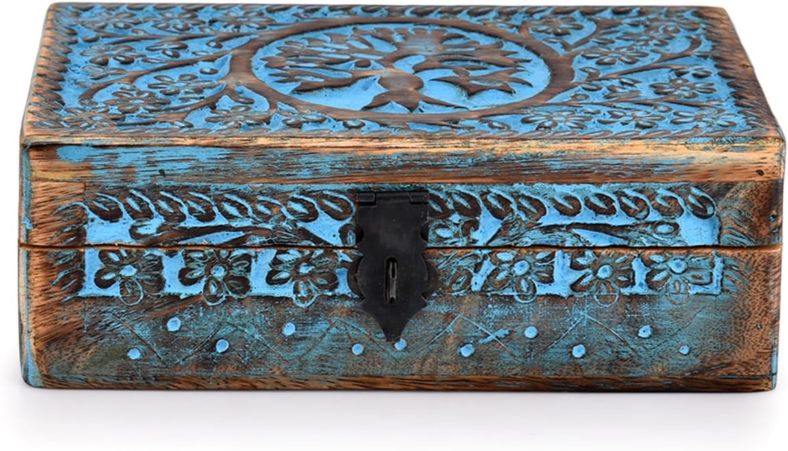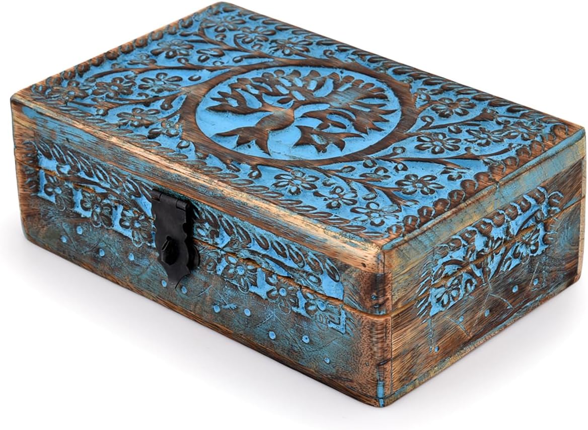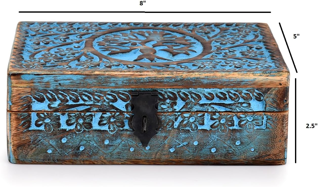 |Wooden Jewelry Box, Tarot Box, Celestial Home Decor, Witch Box, Tree of Life, Trinket Box |Size- 8