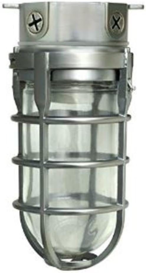 About this itemnOUTDOOR SECURITY LIGHT: Add extra security to your home with these security lights that comes in a brushed steel finish perfect for any home d?cor stylenDURABLE AND VANDAL RESISTANT: The all metal die cast aluminum cage protects bulbnWEATHER TIGHT: Tempered glass with vapor tight seal to keep moisture outnUses up to 150 watt standard base bulbs (not included)nUL and CUL listedn See more product details