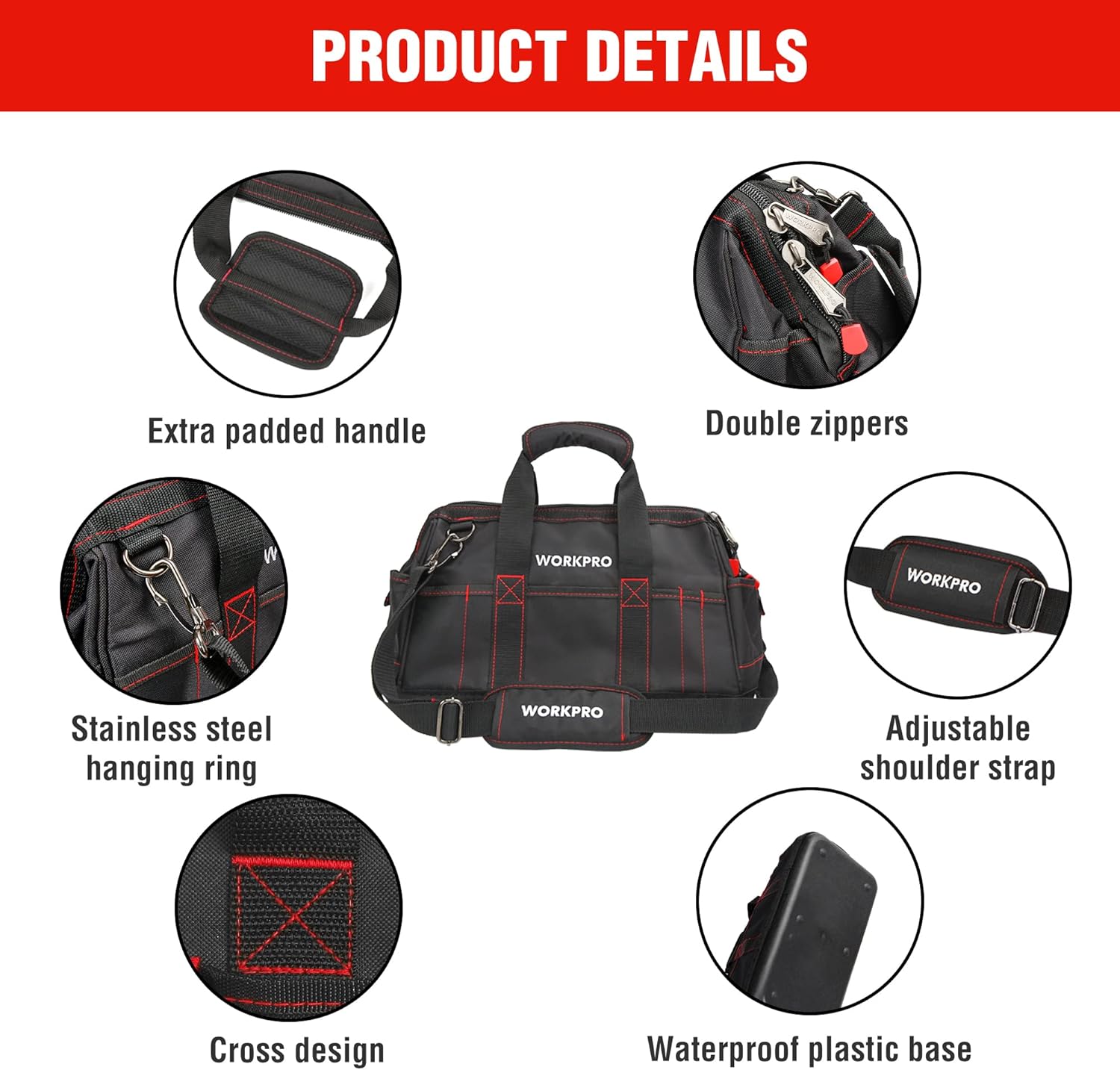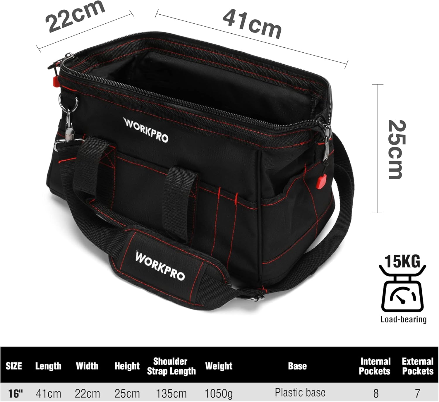 WORKPRO 16-inch Close Top Wide Mouth Tool Storage Bag with Water Proof Rubber Base, W081022A, 16