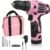 WORKPRO Pink Cordless Drill Driver Set, 12V Electric Screwdriver Driver Tool Kit, 3/8
