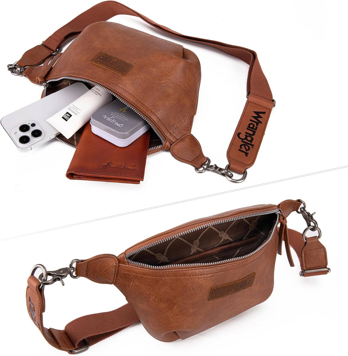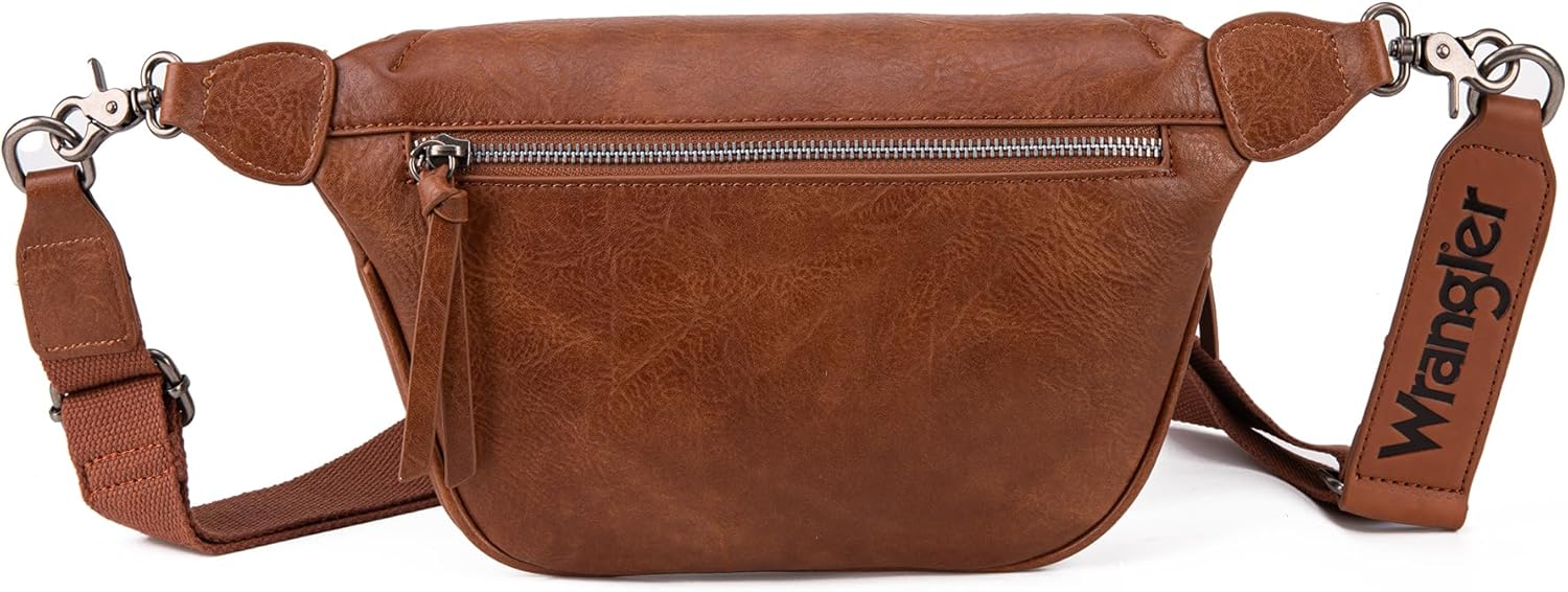 Wrangler Large Fanny Packs for Women Waist Bag Travel Belt Bags Crossbody Sling Bag Brown