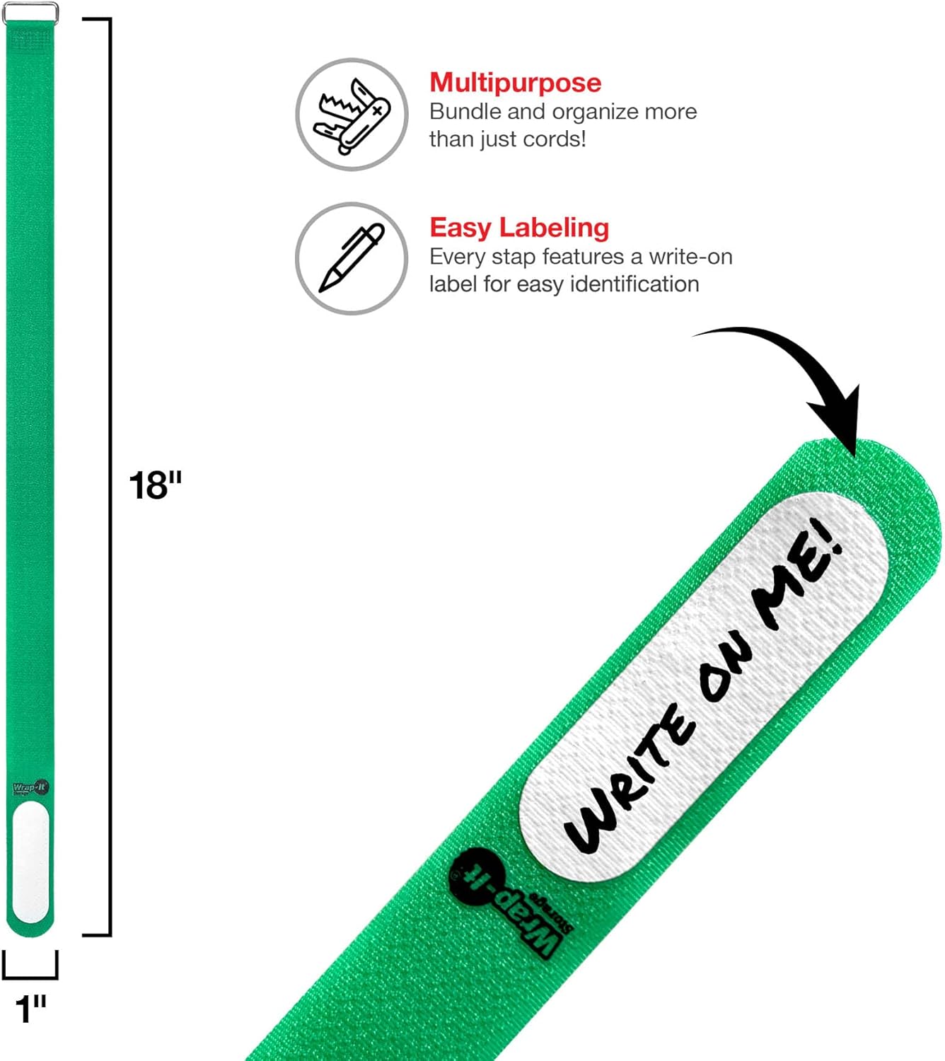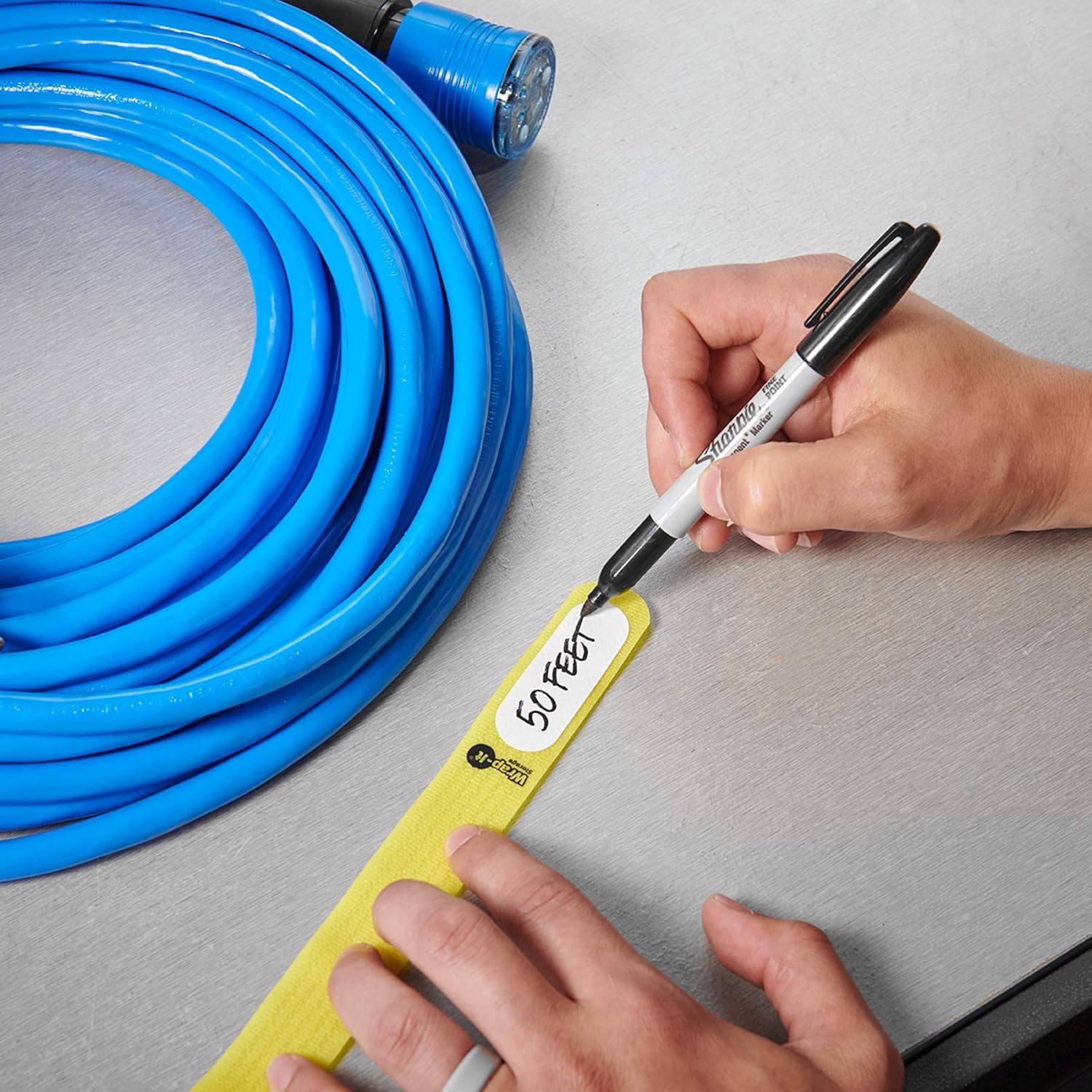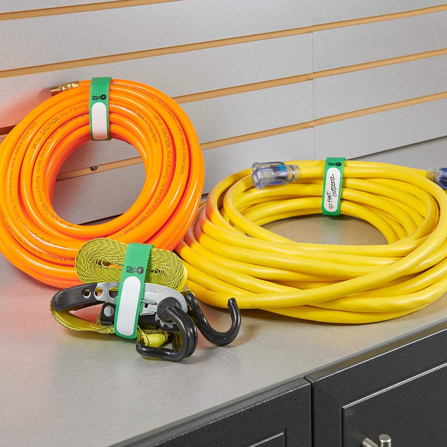 About this itemnIt’s not nice to label people. But it can be really nice to label your stuff. These straps feature a write-on label for easy identification.nGET ORGANIZED: Use for home, junk drawer, tech, and garage organization and cable or cord management. Quickly organize, store and wrap cords, cables, wire and more.nLABEL: Each strap features a tab for labeling your cords, cables, wire, or whatever you need to wrap up!nMULTIPURPOSE, REUSABLE, and DURABLE: A great alternative to zip ties and other one-time use fasteners. Features super strong nylon and metal buckle so you can use these indoors or out.nIncludes: 12, 18-in. x 1-in. straps with label. Great for bundling up 50 ft extension cords, power cords, smaller water hoses, pipe, power tools, and more. + 30-Day Money-Back Guaranteen› See more product details