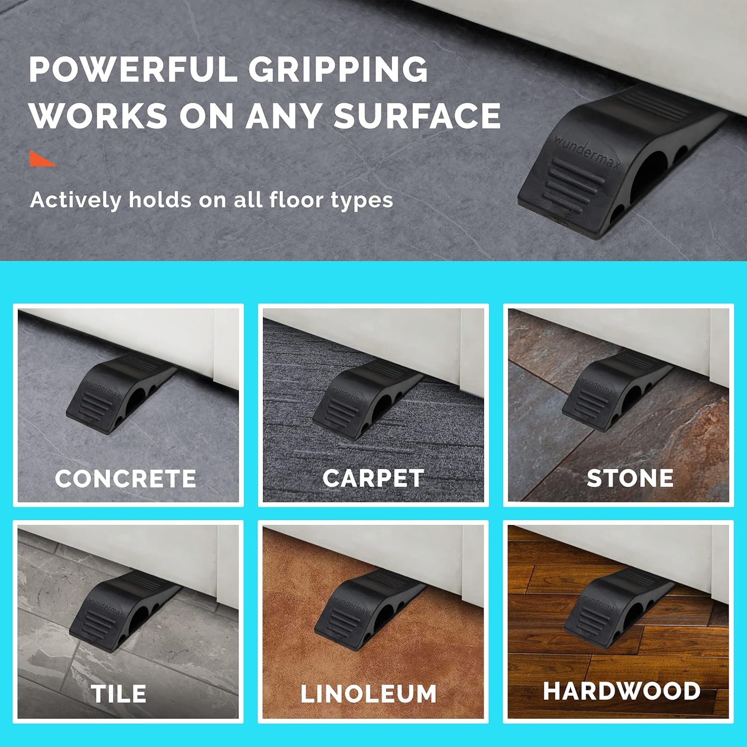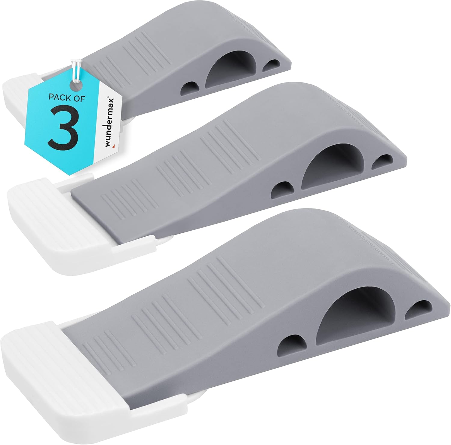 Wundermax Door Stoppers – Pack of 3 Rubber Door Wedge for Carpet, Hardwood, Concrete and Tile – Home Improvement Accessories – Gray