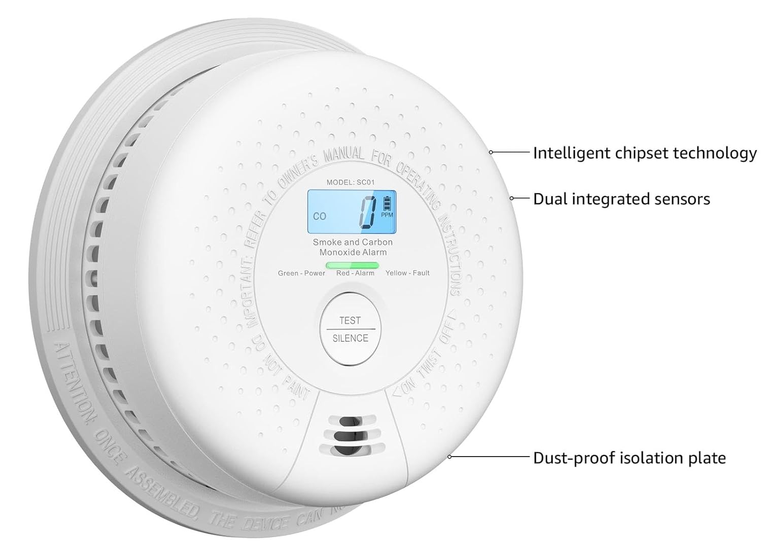 About this itemnPlease Note: SC01 is a basic standalone unit; it does not support wireless interconnection, does not have Wi-Fi, and cannot be used with a base station; for interconnection, search for SC01-Wn10-Year Sealed Battery (Not AC Hardwired): Contains a long-life lithium battery that powers the device for its entire 10-year lifen2-in-1 Protection: This combination detector protects your family against two dangers-both smoke and carbon monoxidenSimple Installation: Requires no rewiring; easy to mount this fire and CO alarm on any wall or ceiling with the included mounting bracket, screws and anchor plugsnLoud 85 dB Alarm: Upgraded photoelectric and electrochemical sensors significantly increase the sensitivity of the alarm for a faster response time while minimizing false alarmsnPremium Material: Made from an upgraded PC material that is heat-resistant, high-temperature resistant, and corrosion-resistant