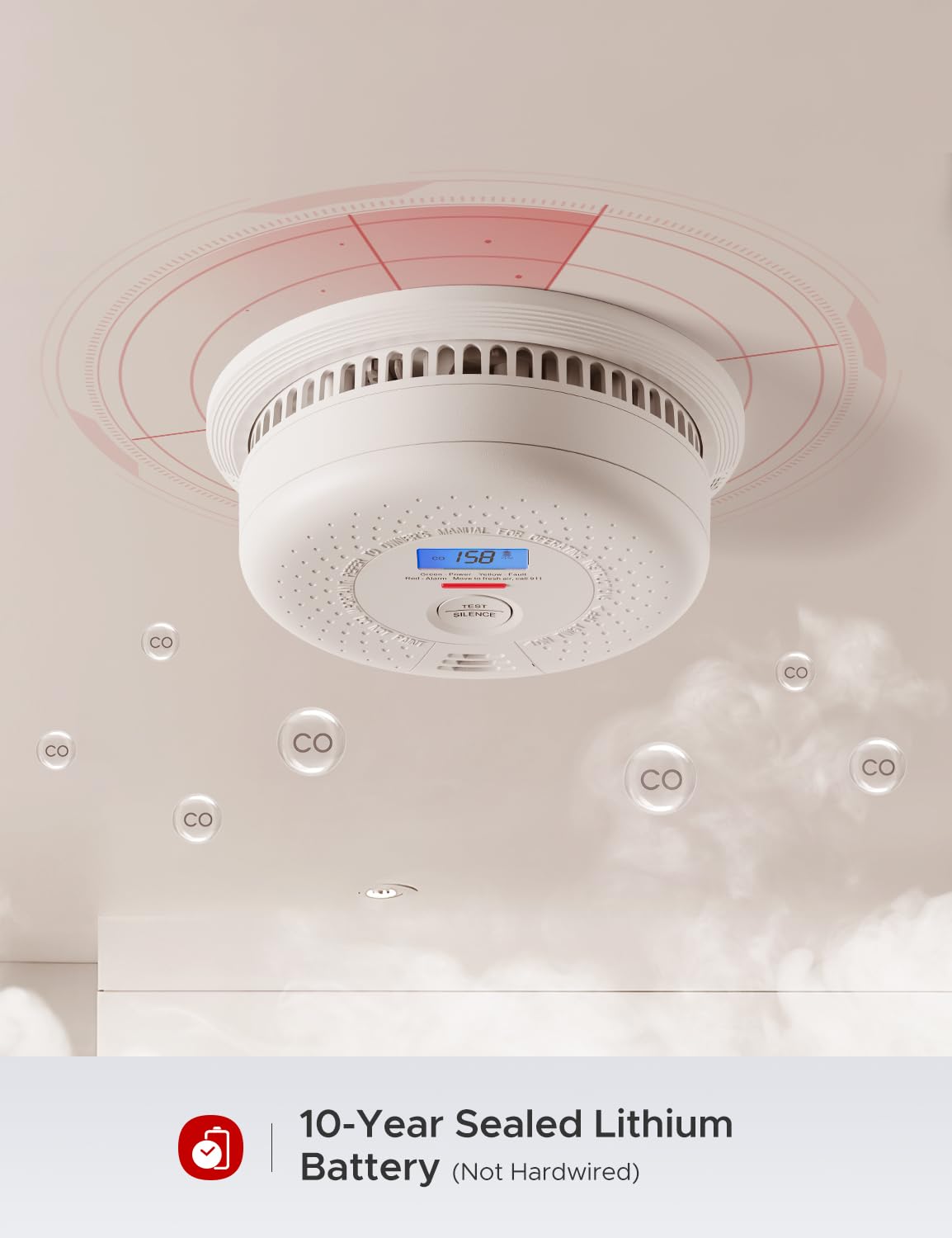X-Sense Smoke Detector Carbon Monoxide Detector Combo, 10-Year Battery Smoke Detector with Display, Standalone Model SC01, Single Pack