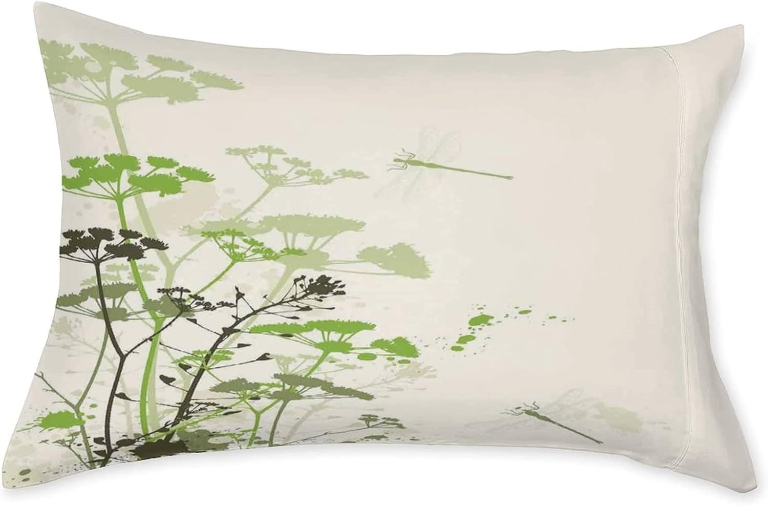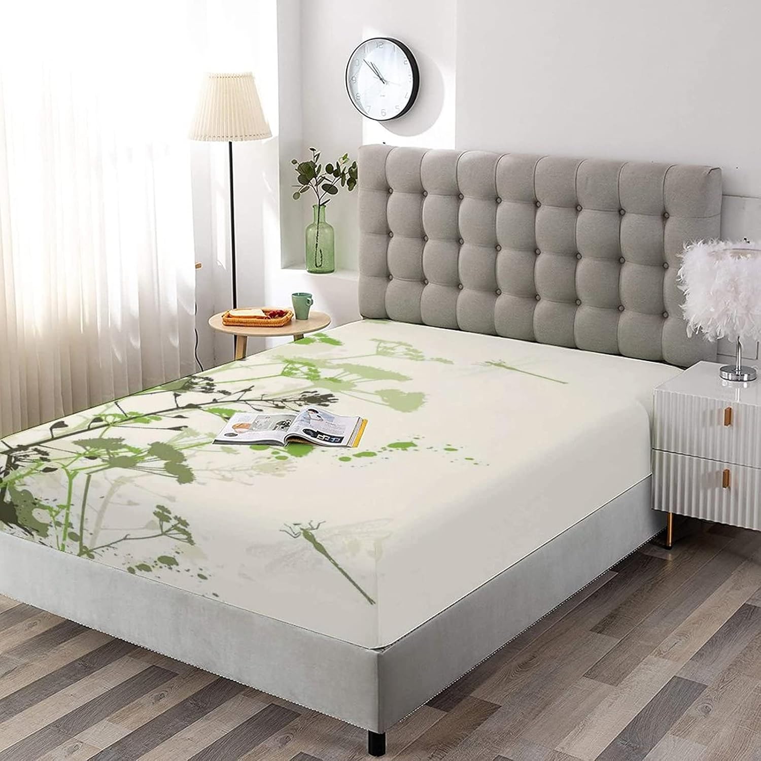 XISUNYA Decorative Fitted Sheet Set Twin Size, Dragonfly Deep Pockets Fitted Sheet & 2 Pillow Sham Set, Minimalist Foliage Herbs Dragonflies Winged Insects Mystic Printed Microfiber Bedding 3pc Set