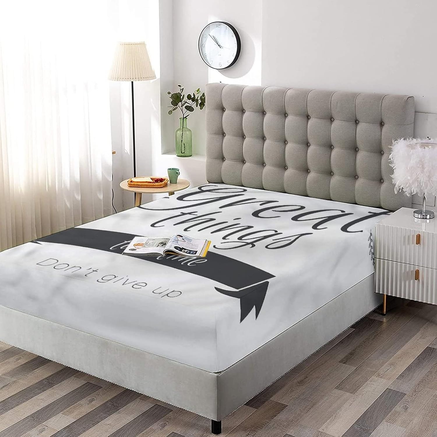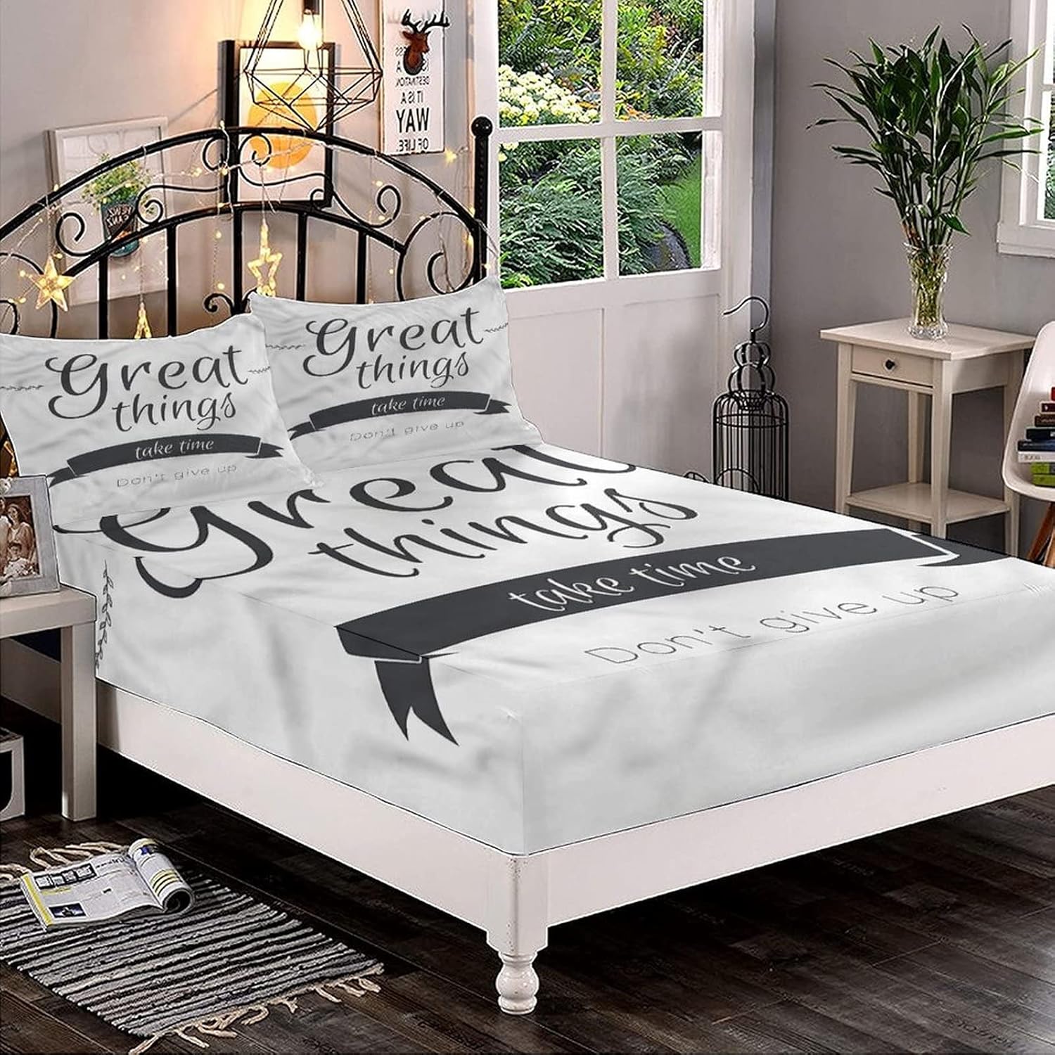XISUNYA Decorative Fitted Sheet Set Twin Size, Quotes Deep Pockets Fitted Sheet & 2 Pillow Sham Set(No Flat Sheet), Inspirational Lettering Printed Microfiber Bedding 3pc Set, for Women & Men Bedding