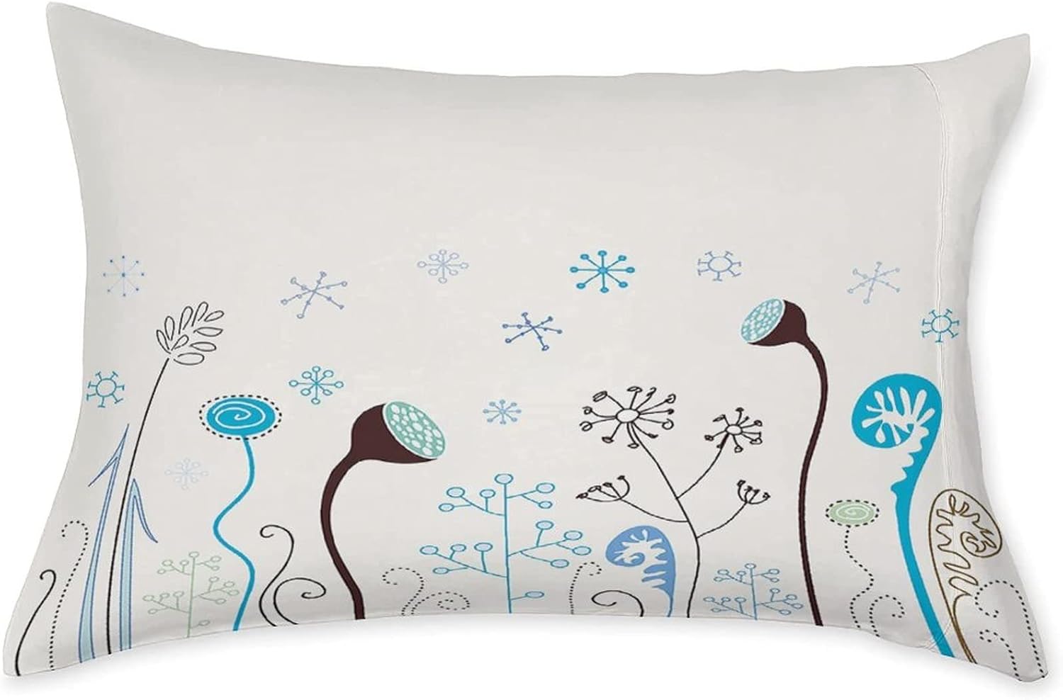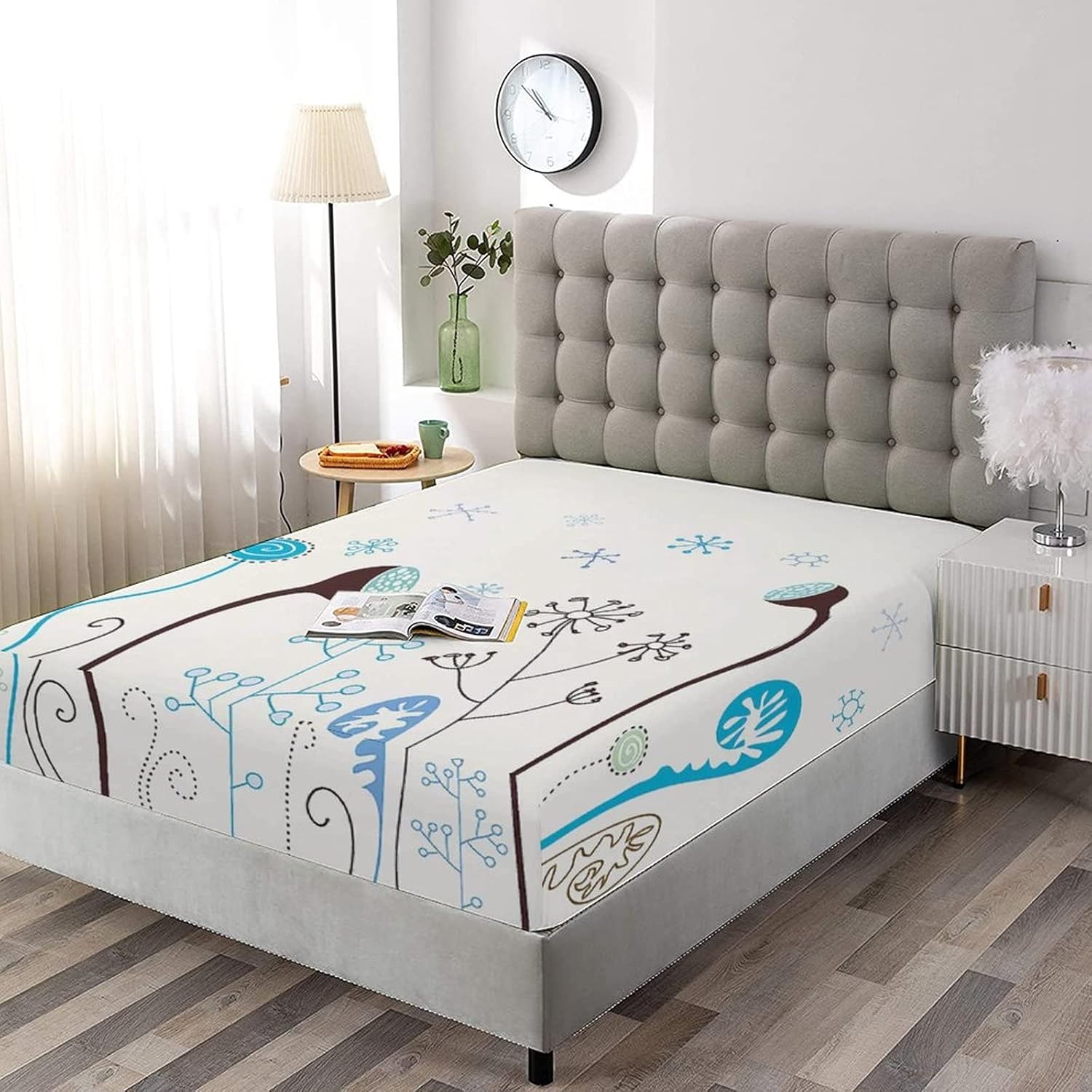 XISUNYA Decorative Fitted Sheet Set Twin Size, Winter Deep Pockets Fitted Sheet & 2 Pillow Sham Set, Cute Seasonal Flowers with Snowflakes Hand Drawn Printed Microfiber Bedding 3pc Set