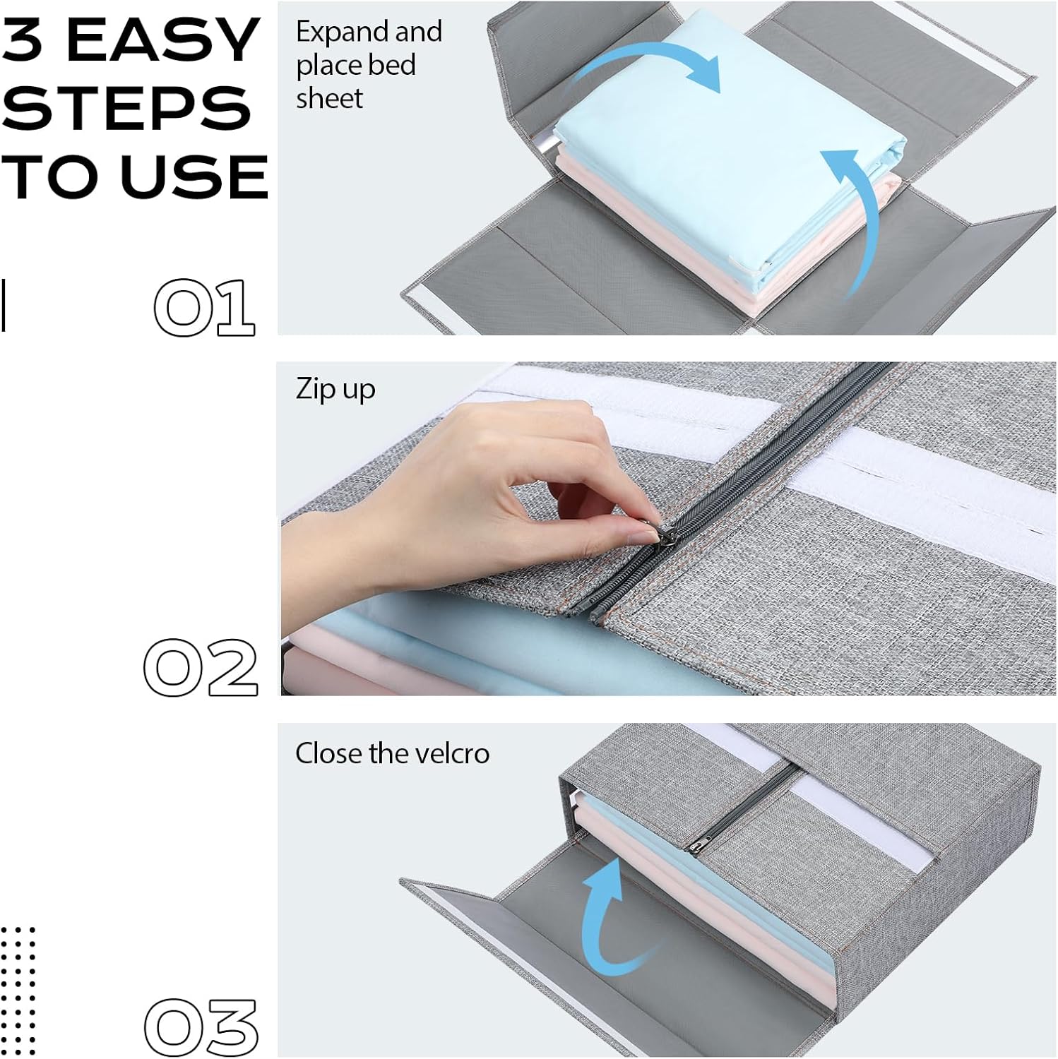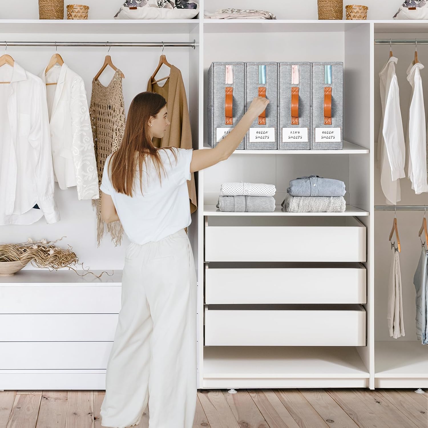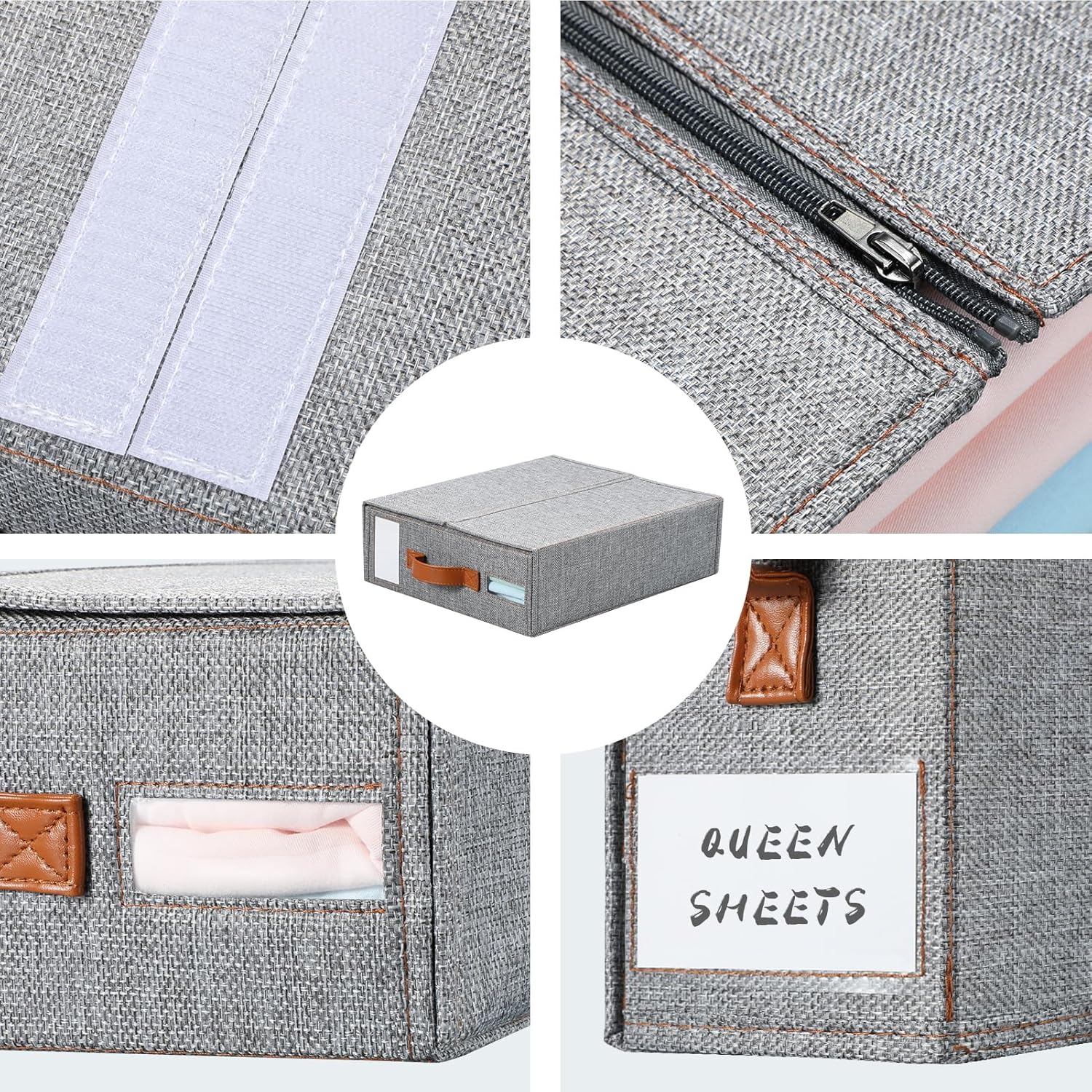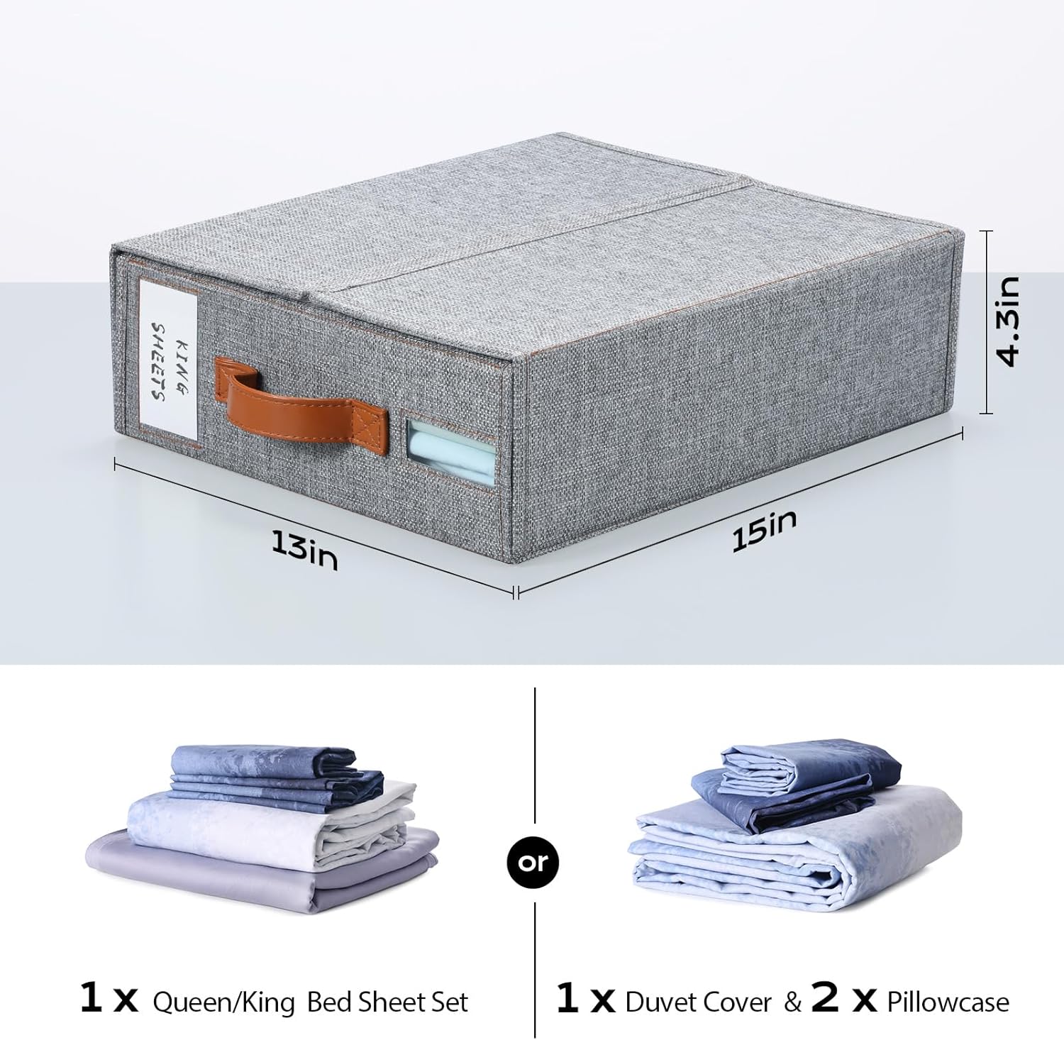 Yecaye 4 Pack Bed Sheet Organizer, Foldable Linen Closet Organizers and Storage, Sheets Set Organizer (Queen & King Size) with Window, Bedding Storage Box for Bedsheets, Duvet Covers and Pillow