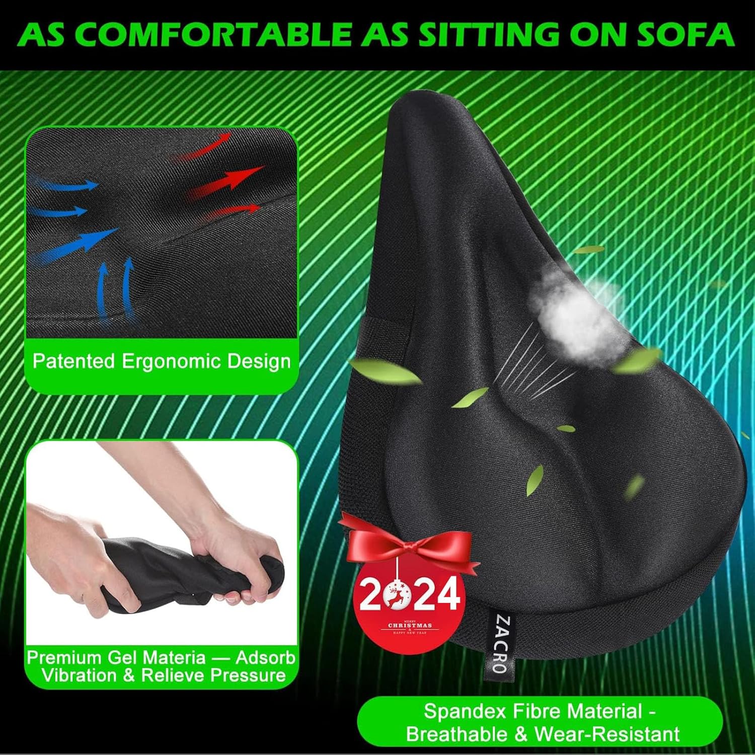 Zacro Bike Seat Cushion – Gel Padded Bike Seat Cover for Men Women Comfort, Extra Soft Exercise Bicycle Seat Compatible with Peloton, Outdoor & Indoor