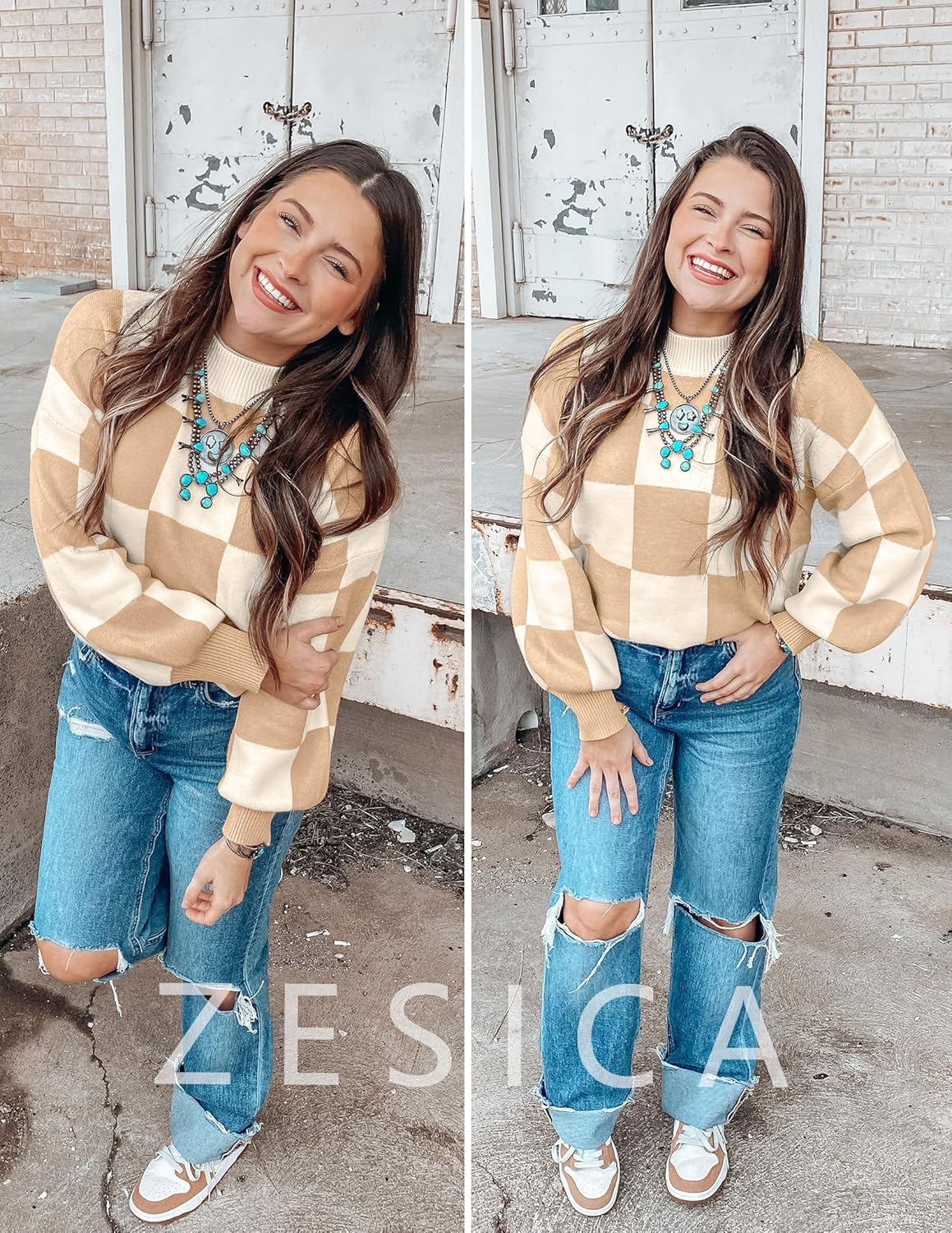 ZESICA Women’s Fall Fashion Turtleneck Long Sleeve Striped Ribbed Knit Loose Pullover Sweater Tops