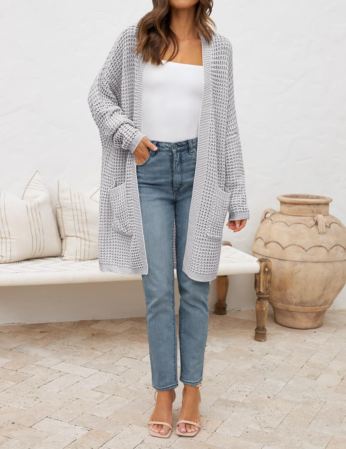 ZESICA Women’s Fall Long Batwing Sleeve Open Front Chunky Knit Cardigan Sweater